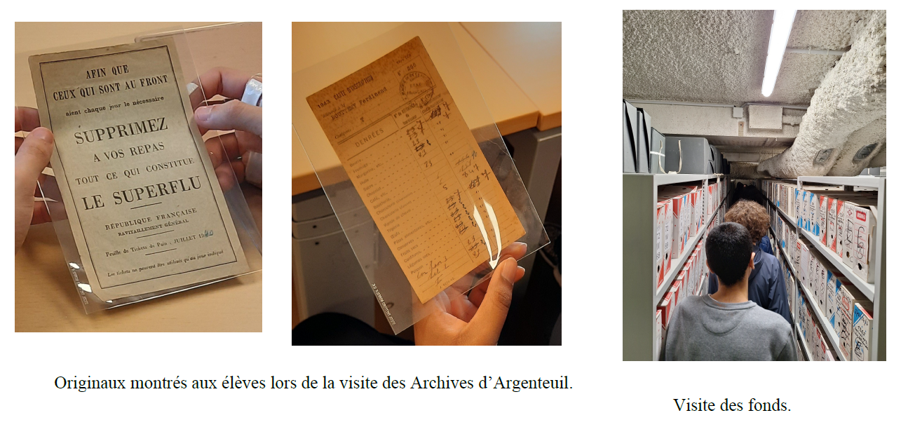 Ce projet a été mené en plusieurs étapes au cours de l’année, avec une classe de 3e. Il s’intègre à différentes séquences du programme (La Seconde Guerre mondiale, une guerre d’anéantissement ; La France défaite et occupée), et a fait l’objet de trois sorties.