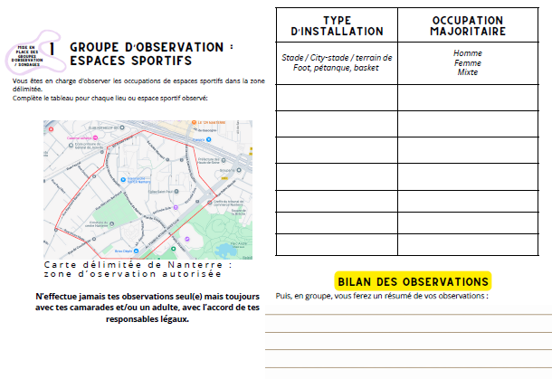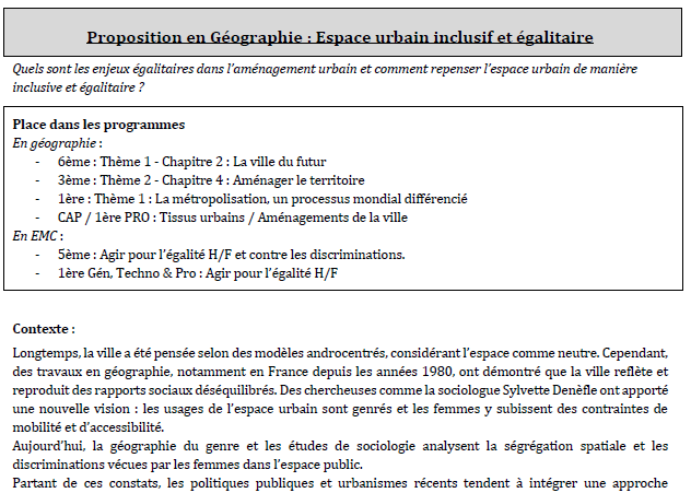 Cette séquence décrit les conditions d’une sortie de terrain permettant l’observation de l’espace urbain à travers le prisme égalitaire afin que les élèves prennent conscience des inégalités d’appropriation des espaces de leur territoire.