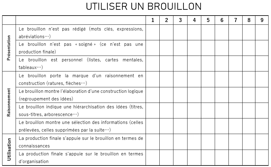 - Les élèves ne se rendent pas compte que le brouillon est un « écrit pour penser » et qu’il a plusieurs fonctions : poser ses idées, délimiter le sujet, organiser ses idées, préparer un écrit ou un oral.