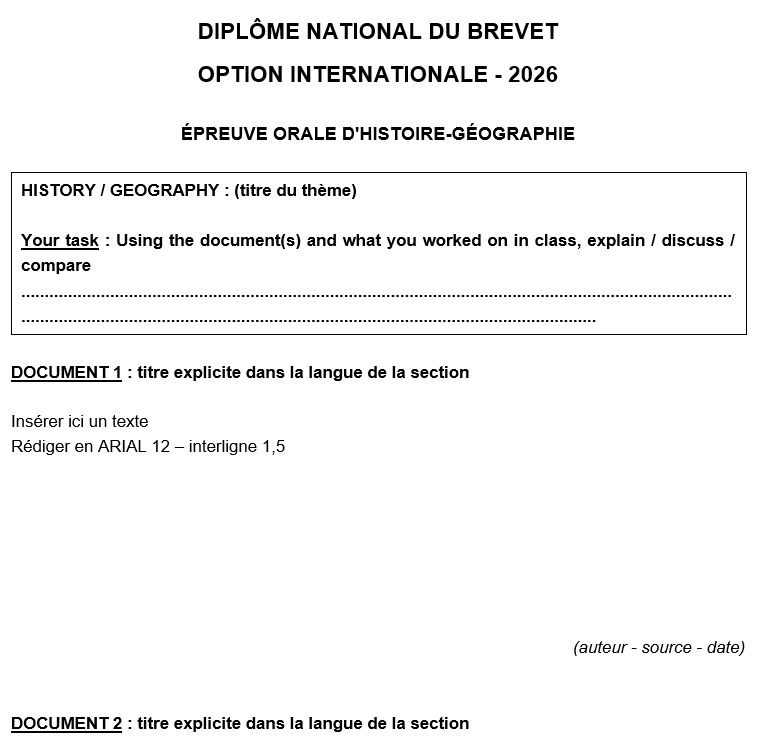 L’épreuve s’appuie sur les travaux et activités réalisés durant l’année de troisième.